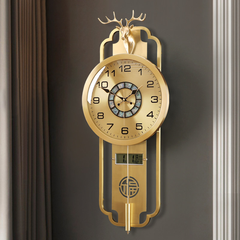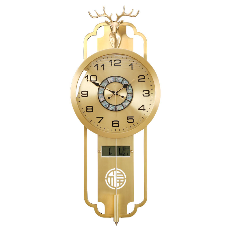 Brass Foe Deer New Chinese Style Clock Hanging Clock Living Room Home Perpetual Calendar Light Extravagant Table Hanging Wall Clock Silent Quartz Clock-Taobao