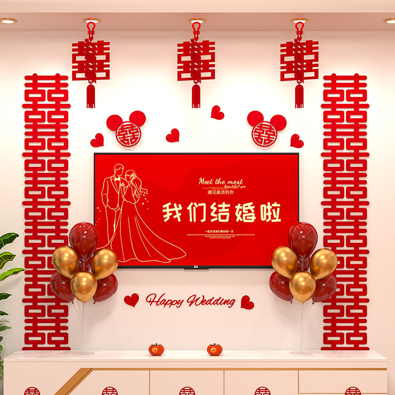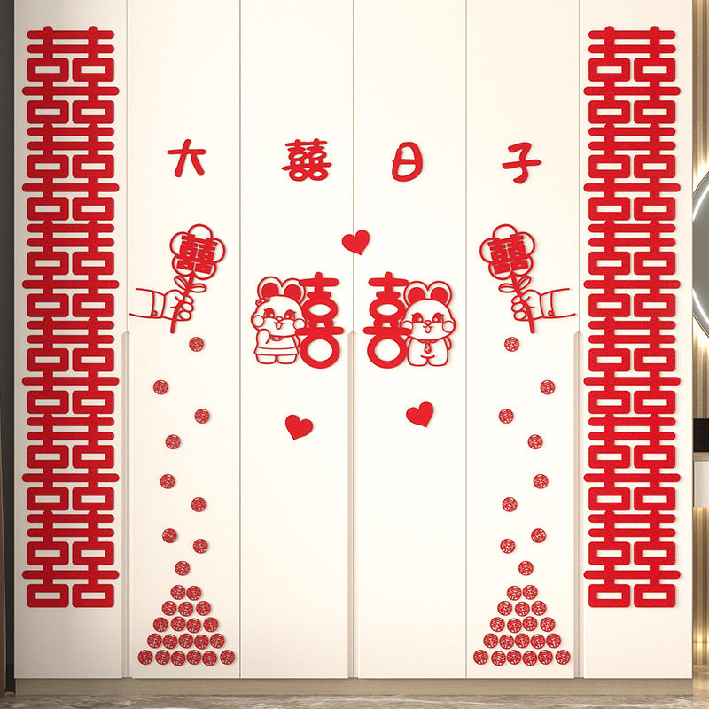 Wedding Xi Word Sticker Suit Wedding House Placement Decoration Wedding Full House Bedroom Gate Sticker of the Chinese character Special wedding items-Taobao