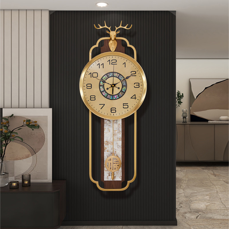 New Chinese brass hanging bell sitting room home fashion light extravagant hanging watch clock 2023 new timeless quartz clock-Taobao