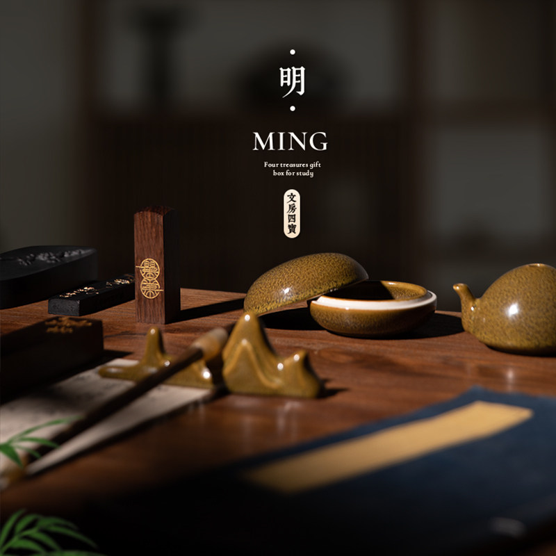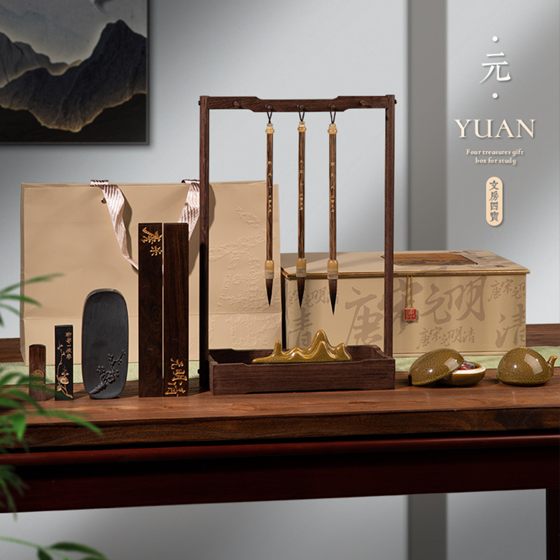 Lani Ramadan Room Four Treasure Suit Brush ink Ink Stone Brush Holder Ink Bar End Ink-ink Zhen Ruler Pen Ink Paper Inkstone ink Brush Pen Calligraphy National Painting Special Professional Class High-end Wenfang Gift Box Send People Gift Suit-Taobao