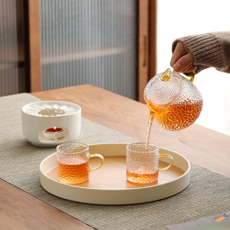 Fruit teapot set afternoon tea set home heat-resistant glass flower teapot warm tea stove candle heating ceramic base
