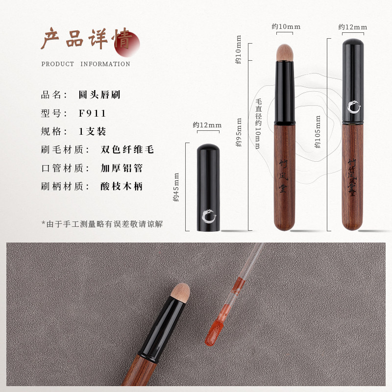 Bamboo Pinewood Makeup Brush Chick F911 round head lip brushed professional with cover mouth red brush portable fainting brush Bamboo Wind Church-Taobao