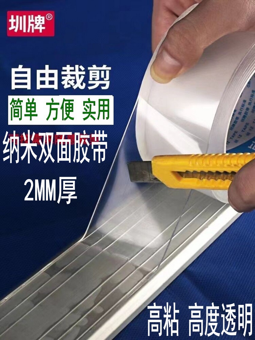 Nano double-sided tape seamless high transparent strong sticky on both sides thick 2MM wide 2CM3 batch price 20MM30 Shenzhen brand