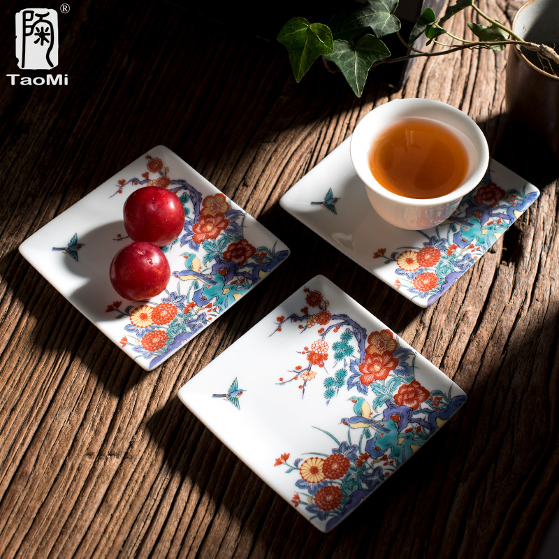 Qingkura Tea Road Accessories Tea Cup Mat Special Price Tea Cup Toqing Flower Porcelain Small Heat Insulation Mat Ceramic Korn Tea With Solid Wood-Taobao
