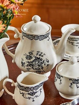 Imported from Germany LID Home classical rose pottery bowl coffee cup retro red black underglaze color tableware
