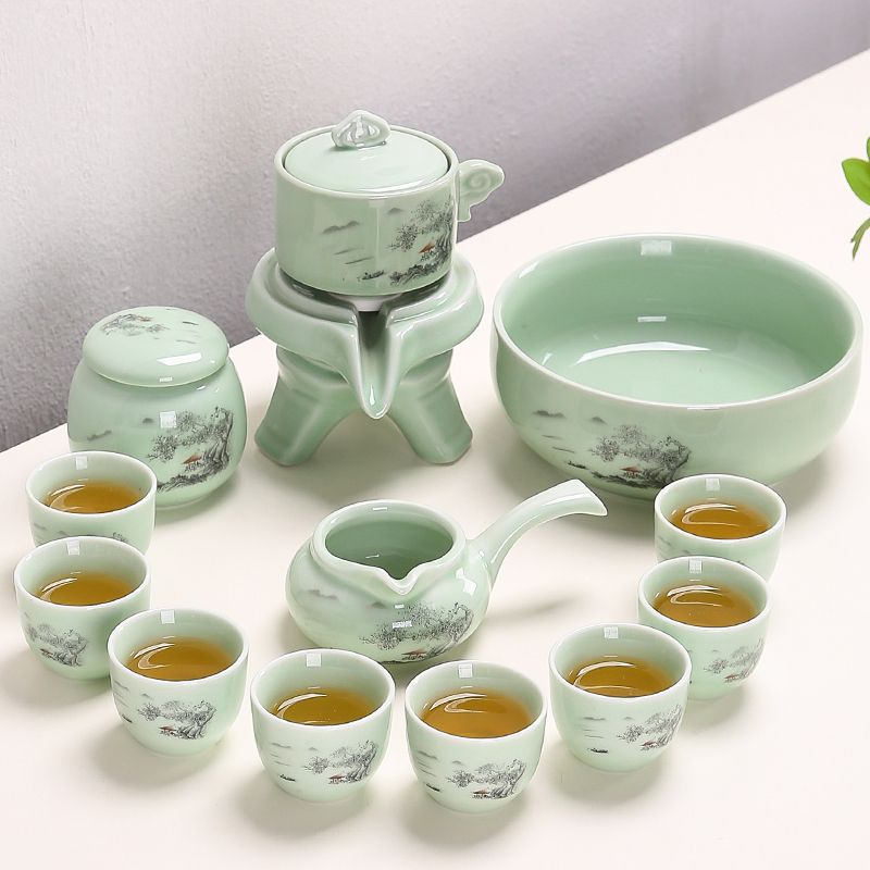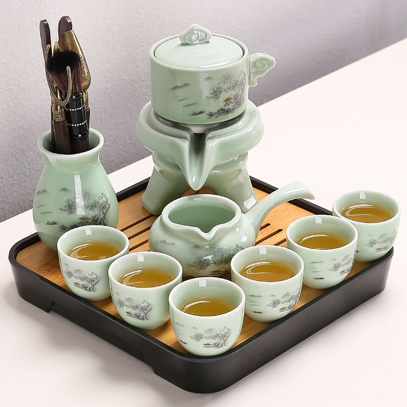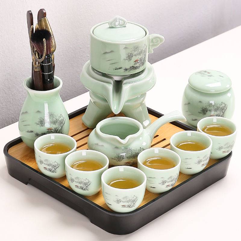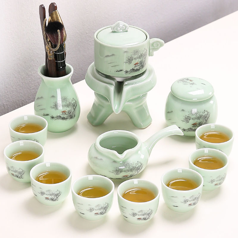 Stone Mill Tea Set for Home Living room Supplies Lazy People Tea Maker automatic teapot Gongfu Tea Cup ceramic whole set-Taobao