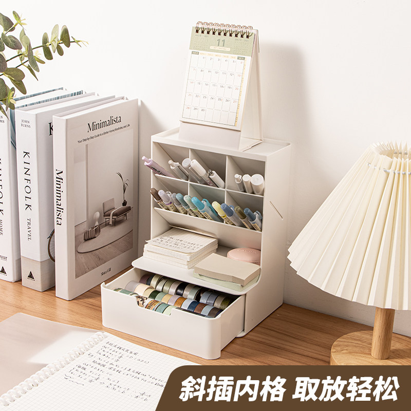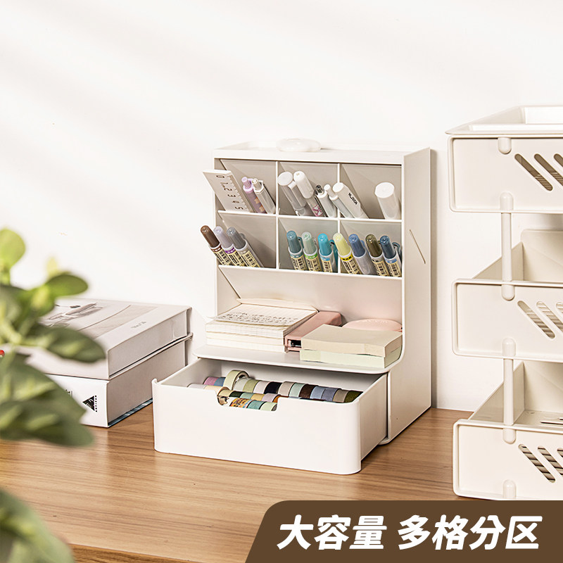 Versatile pen holder containing box drawer-type student Dormitory Stationery Office Desktop Creative Fashion Girls Cute Ins wind Large capacity Children's Children's Box Pop (day color 424) -Taobao