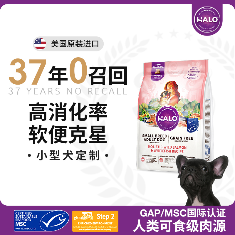 (self-employed) Halo natural light ring without valley small into canine dry grain wild salmon white fish taste 10 pounds-Taobao