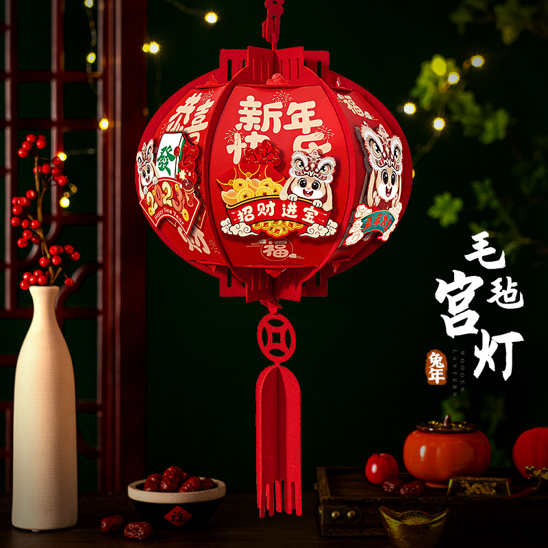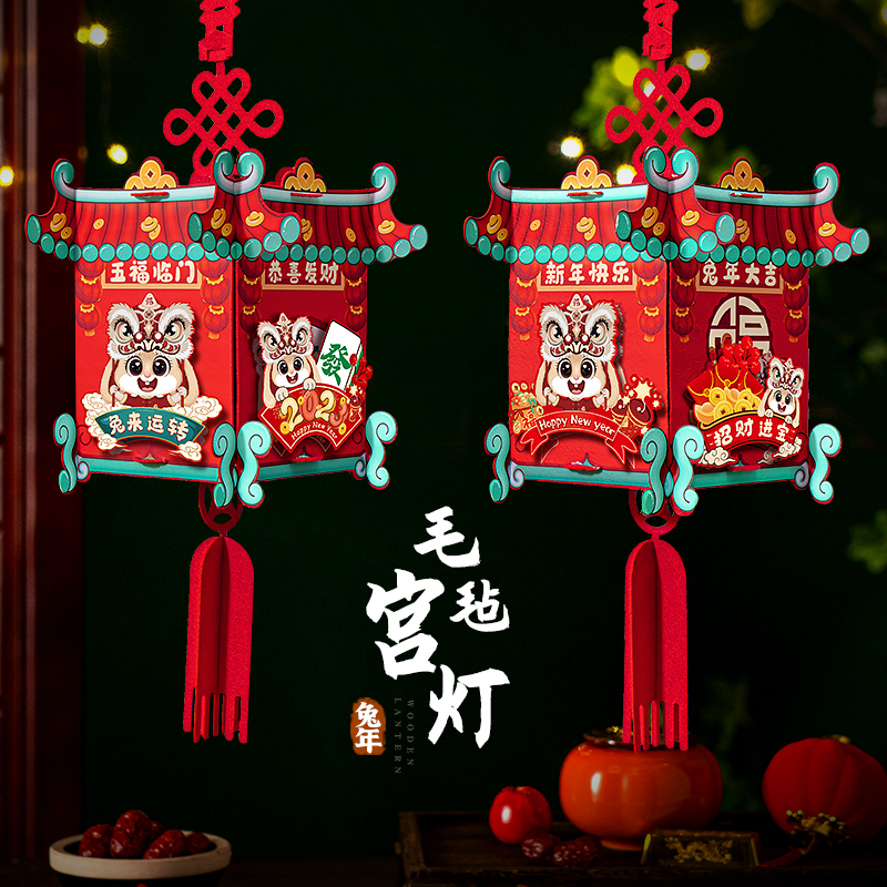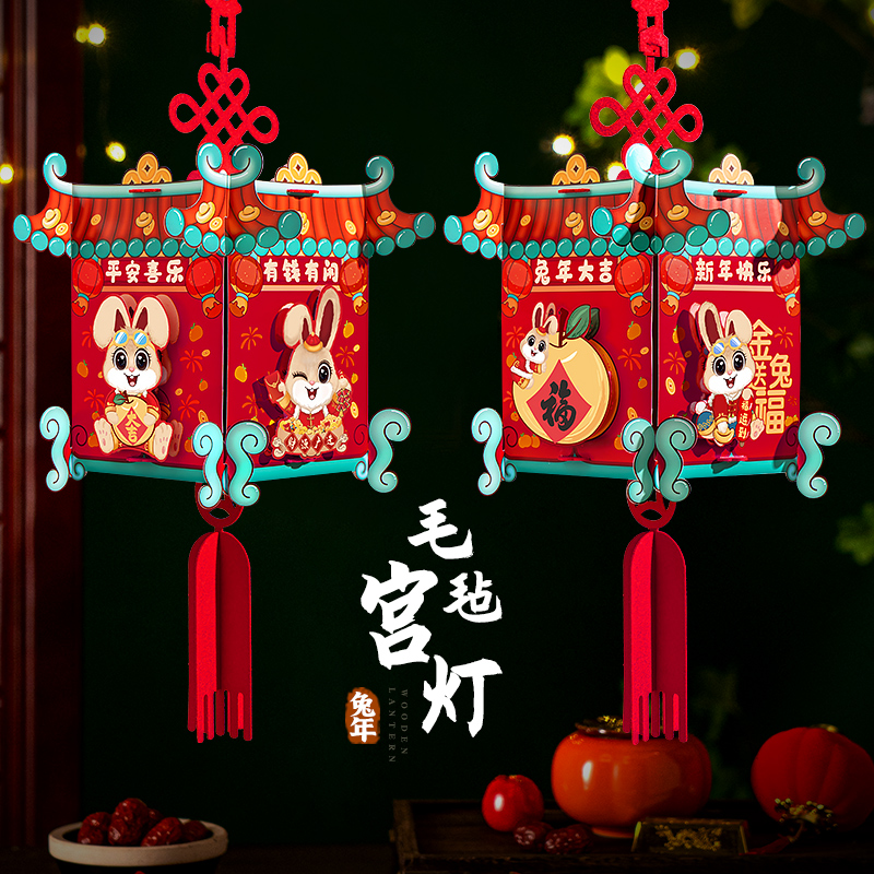 Lion Dance Rabbit square palace lamp-Rabbit runs Lion Dance square palace lamp-Recruit the treasure of the treasure-Guo-Hare square palace lamp-Golden Hare rabbit square lamp-Ping An Joy Hare square lamp-New
