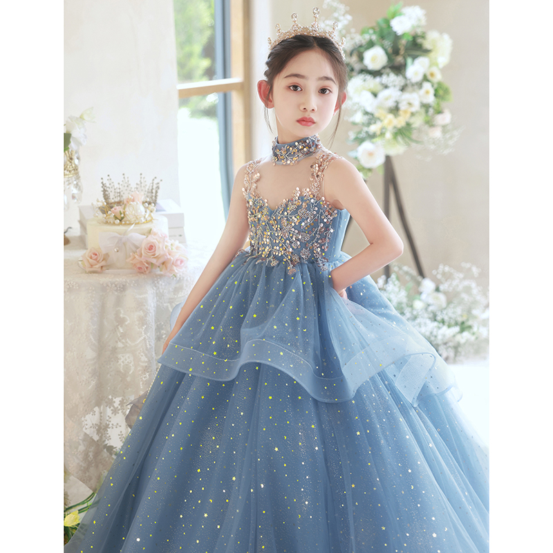 Blue sleeveless bean paste color sleeveless blue puff sleeves blue sleeveless short bean paste color sleeveless short model