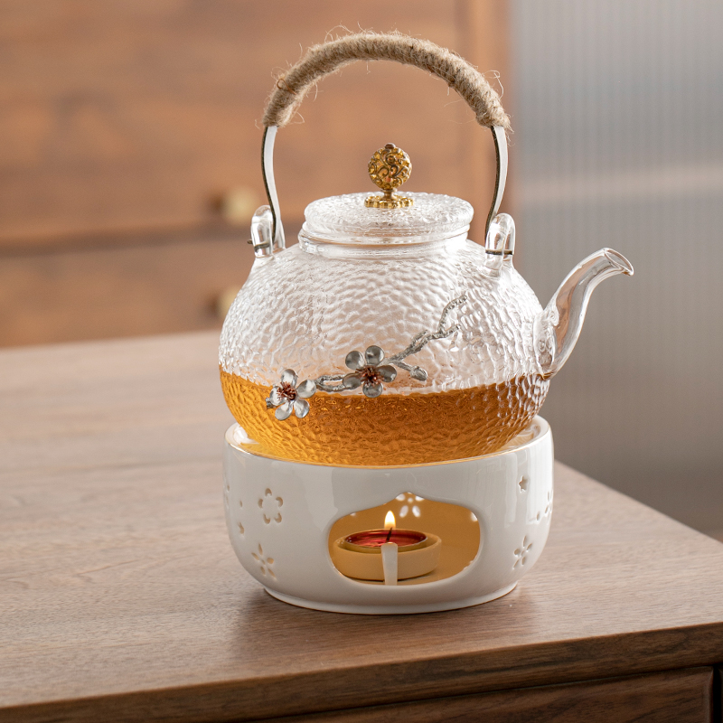 Tin flower hammer pattern pot 900ml Tin flower hammer pattern pot, white cherry blossom base large size 50 candles Tin flower hammer pattern pot, pink electric ceramic stove, tin flower hammer pattern pot, 6 hammer pattern cups, white cherry blossoms