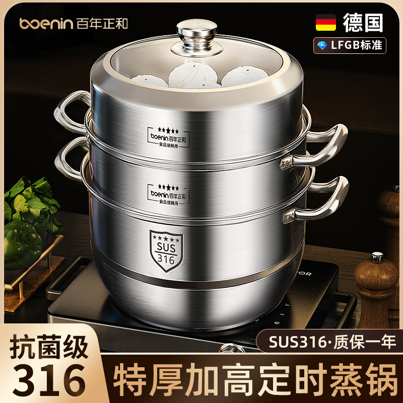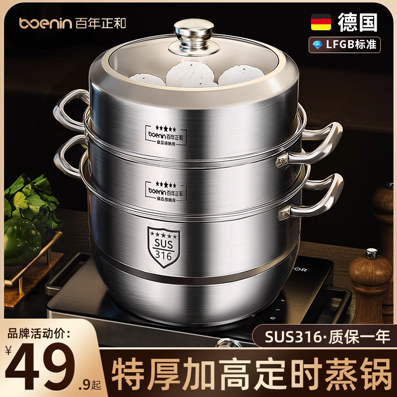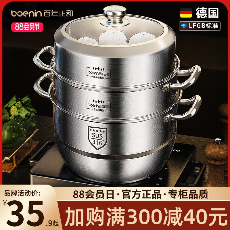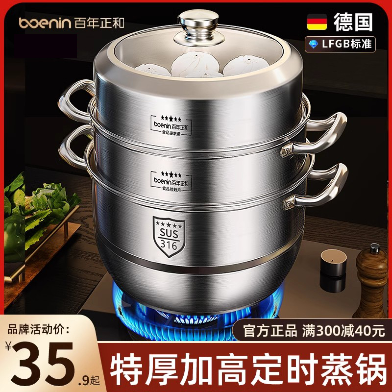 304 Stainless Steel Steamer Multilayer Home Cooking Saucepan Steamer Steamed Buns Head Cage Drawer Thickened induction stove Gas special L-Taobao