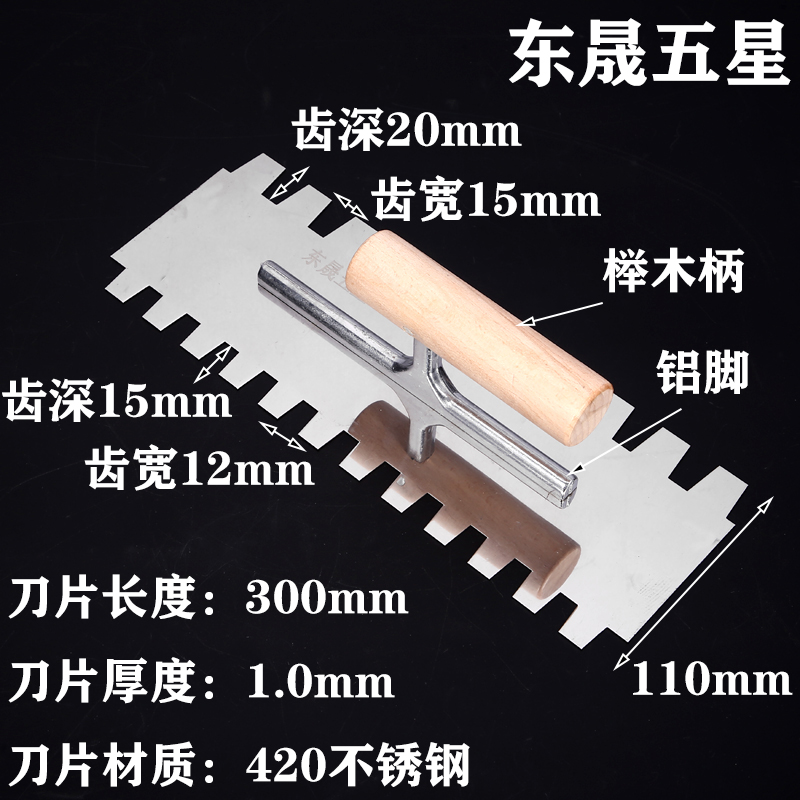 Dongsheng Five-star stainless steel double-sided square-toothed trowel thickened trowel knife laying tile tool