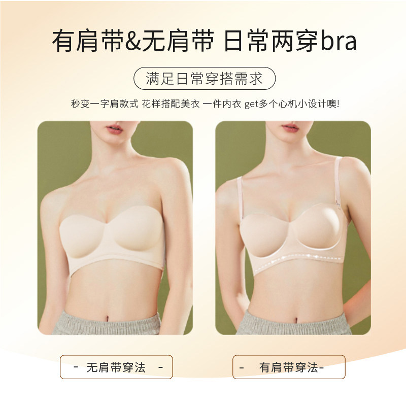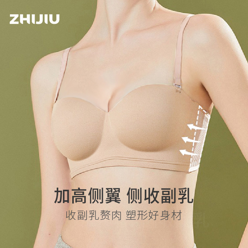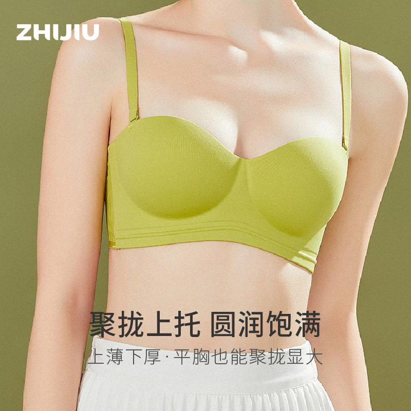 Organization to round up round cups Summer bra gathers non-slip thin with invisible upper to anti-walking light without shoulder strap wrapping chest underwear woman-Taobao