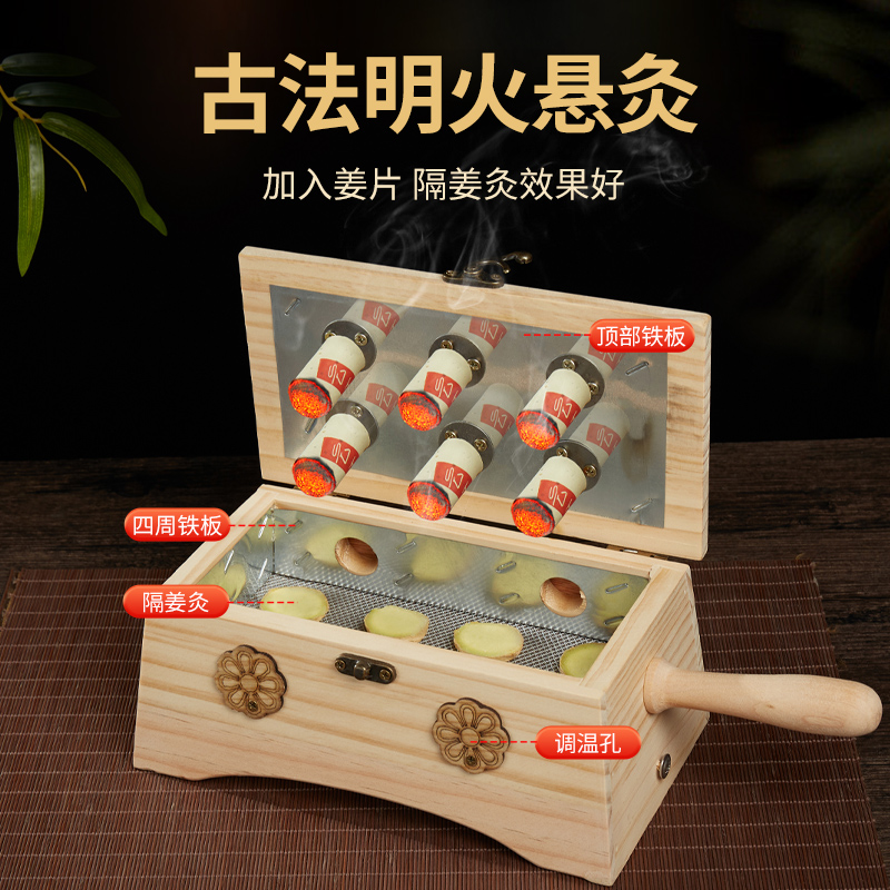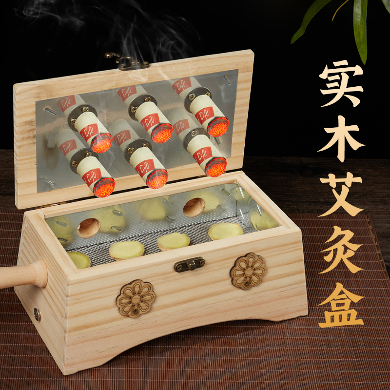 Solid wood moxibustion box sent professional moxibustion tutorial doctor guided solid wood six needles (waist back abdomen moxibustion recommended) acupoint Tubandage solid wood six needles (88% of people choose) 54 tablets Chen Yai