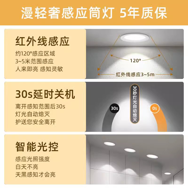5 special price (voice-controlled induction with light control) 7W white light open pore 7-9cm 5 only special price (human induction with light control) 7W white light open pore 7-9cm (acoustic control induction