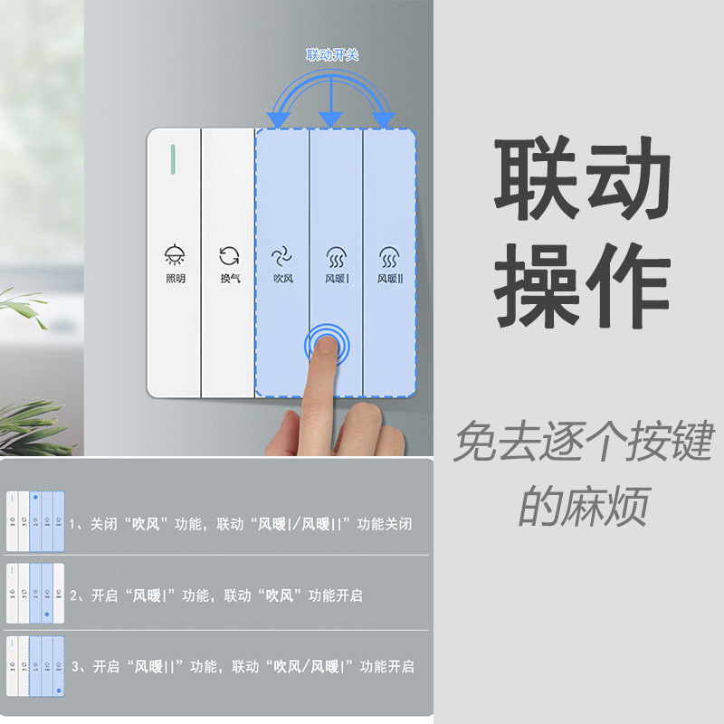 Type 86 Universal Bath Bully Switch Violin Key Five Open Four Open Bathroom With Switch Warm Air 5 Fit 1 Toilet Switch Panel-Taobao