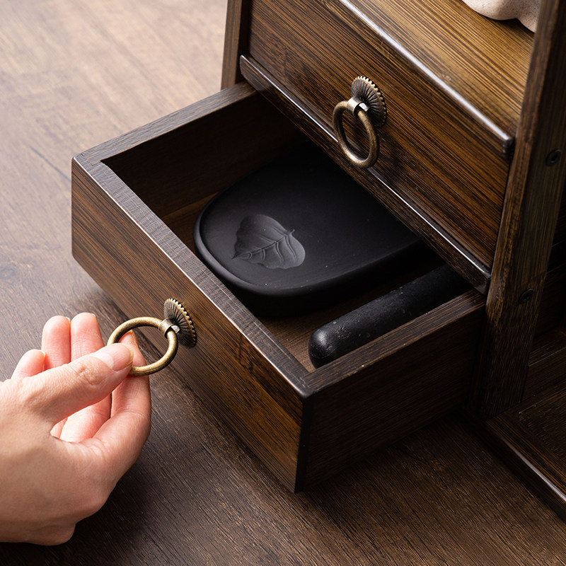 Nanzhubo ancient shelf creative study four treasure storage rack brush hanger three-layer brush rack storage rack multi-function desk simple large size brush rack solid wood place pen rack study desktop decoration