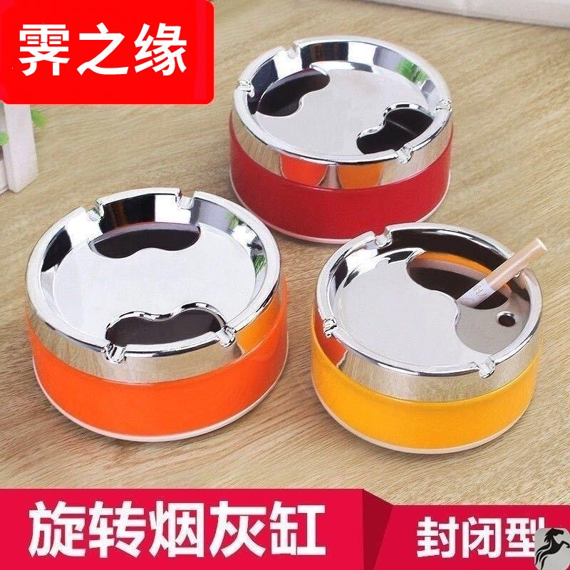 Home with lid ash seal anti-fly ash stainless steel rotating cover wind resistant creativity cute self-extinguishing ash