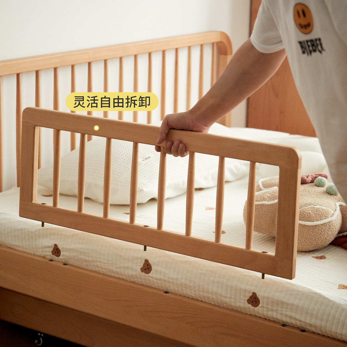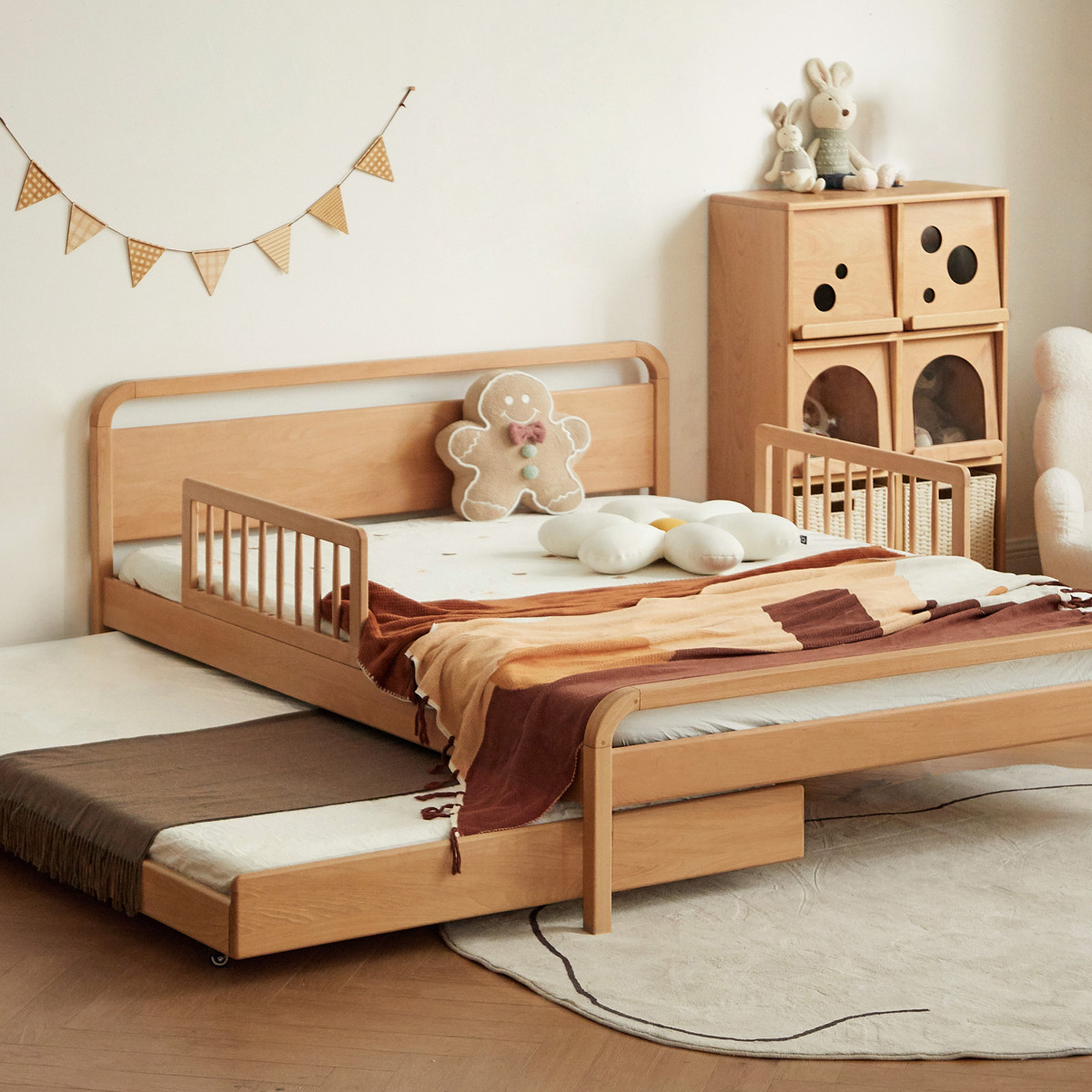Garland solid wood children beds guardrails modern baby anti-fall with storage cloth art hanging bag bed fence bezel-Taobao