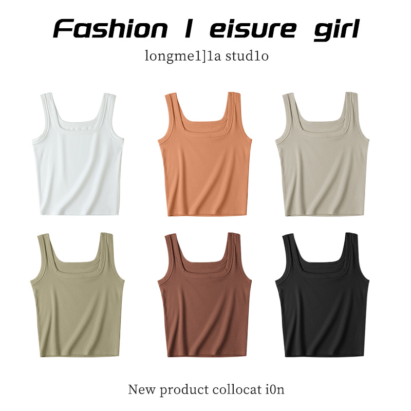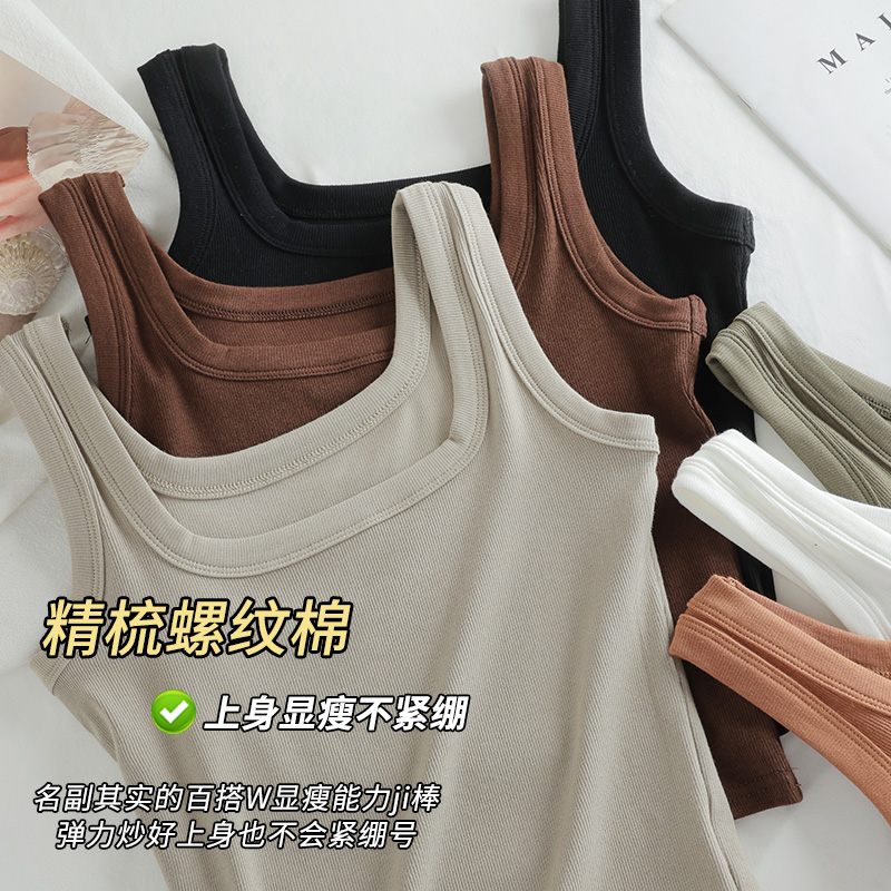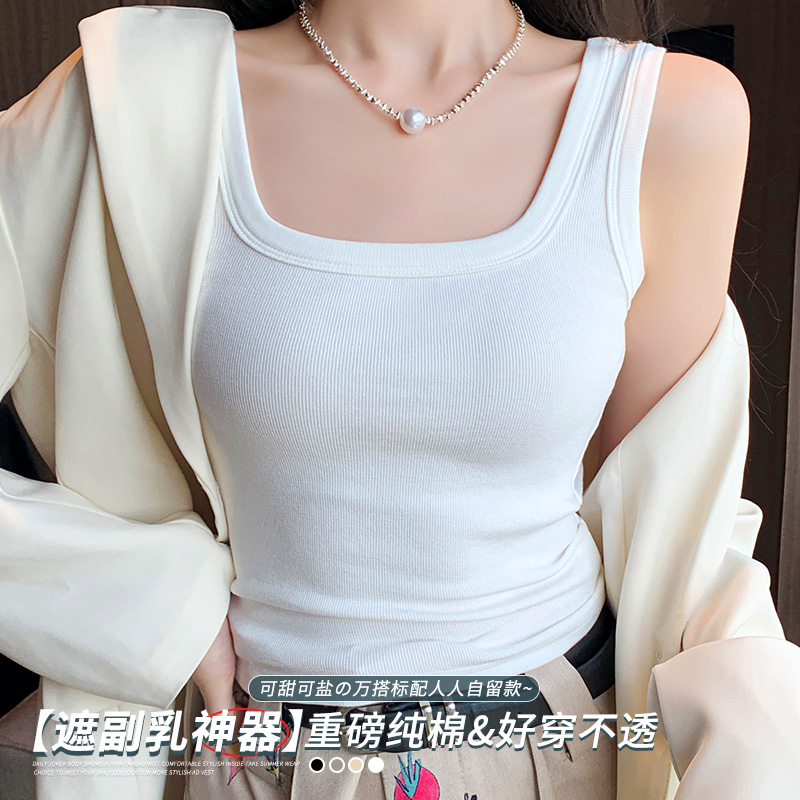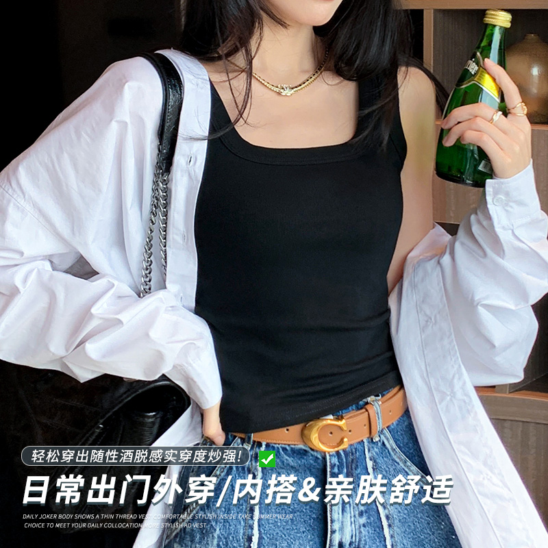 Wide-shoulder square collar camisole women's inner wear summer 2023 new black and white I-shaped cover breasts outer wear bottoming top