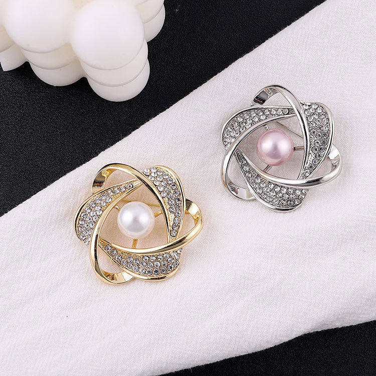 Summer silk scarf buckle anti-light small brooch knotted fixed square scarf pearl decorative scarf ribbon goddess pretty