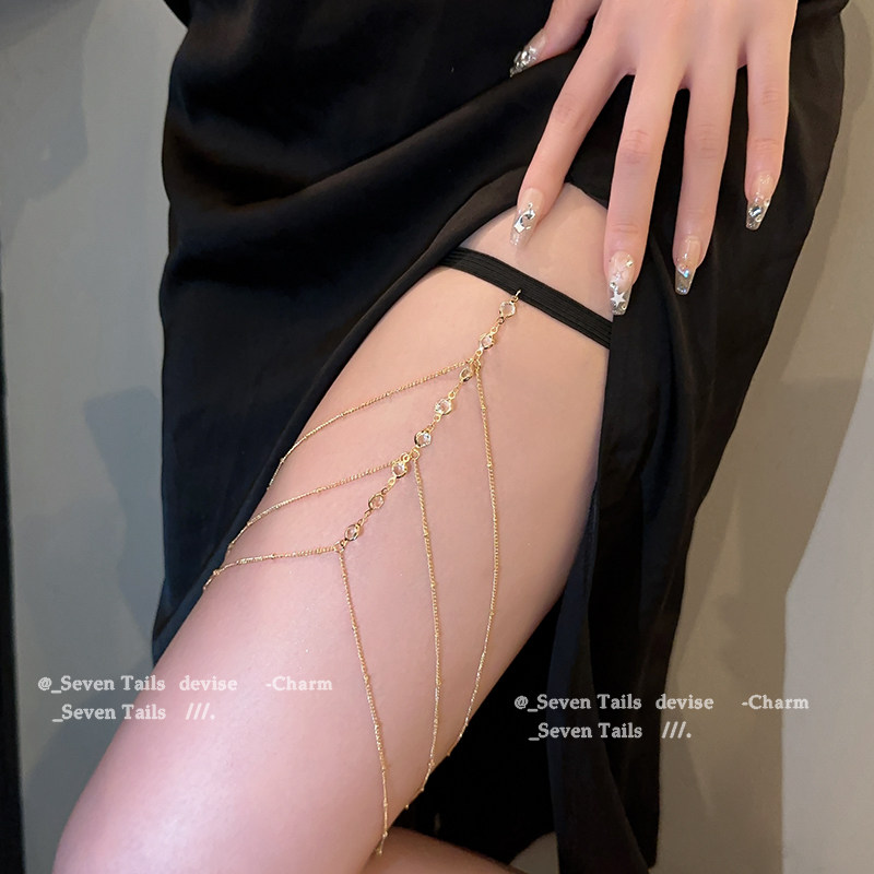 Triple-flow Su water drill leg chain Early autumn New fashion Sexy accessories European and American Hot girls 100 lap net red bursting with body chain-Taobao