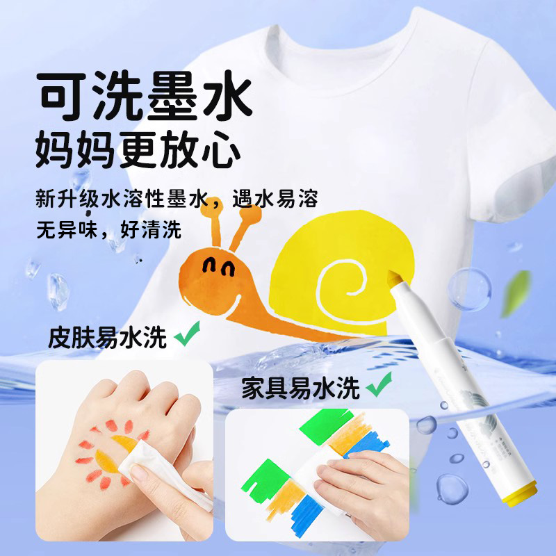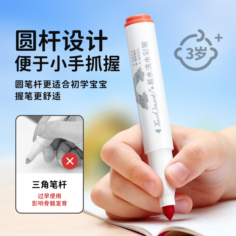 Touchmark children watercolor pen 12 color washable kindergarten coarse head color pen elementary school children 24 color 36 color fine art special impervious paper drawing pen baby without dirty hand colored pen graffiti pen-Ta
