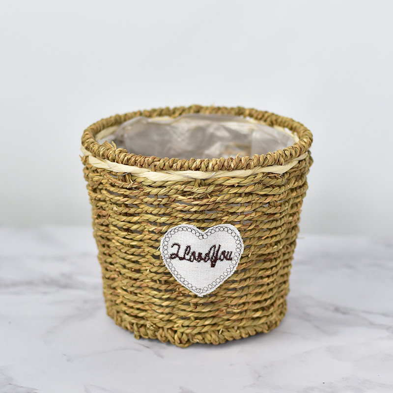 Handmade woven straw choreographer basket European-style field wind living room table top decoration green loo green plant flower pot hydropony water storage basin-Taobao