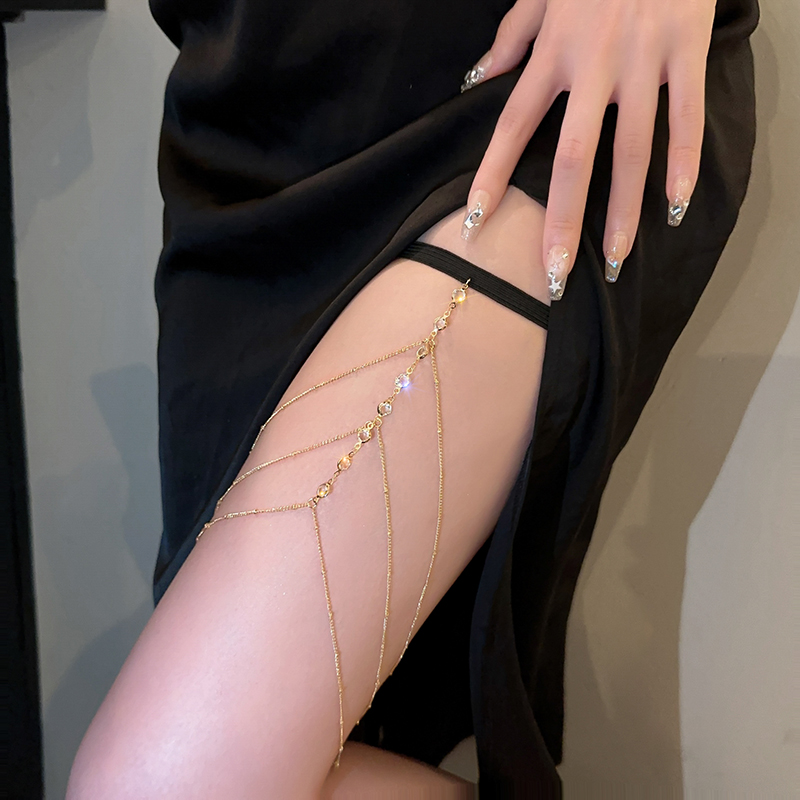Triple Flow SuCrystal Flash Drilling Metal Thigh Chain Woman Fall New Fashion Sexy Holiday Dew Leg Adornment Tide-Taobao
