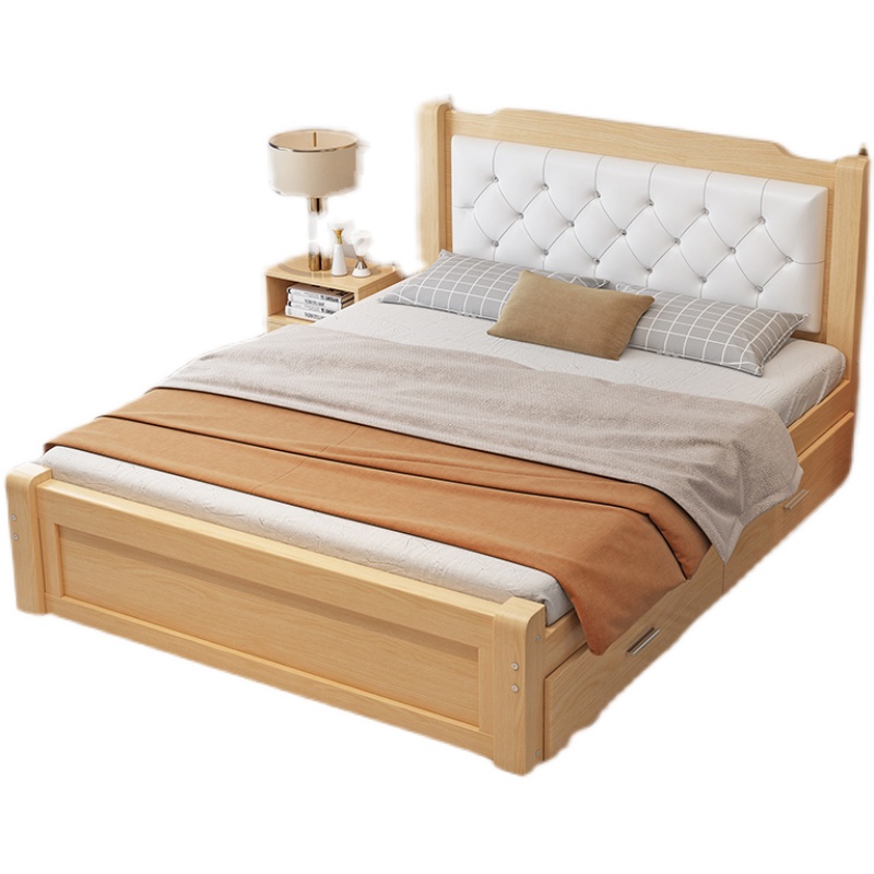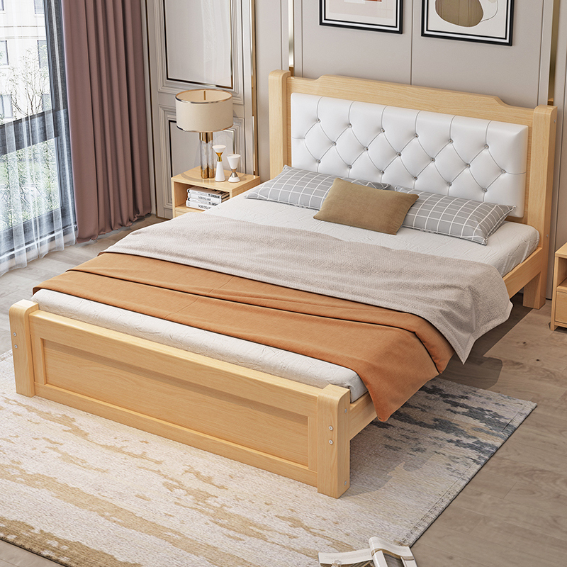 Solid wood bed Full solid wood 1 5 m 1 8 m Single beds Bedroom beds Modern minimalist Type rental room Double beds-Taobao