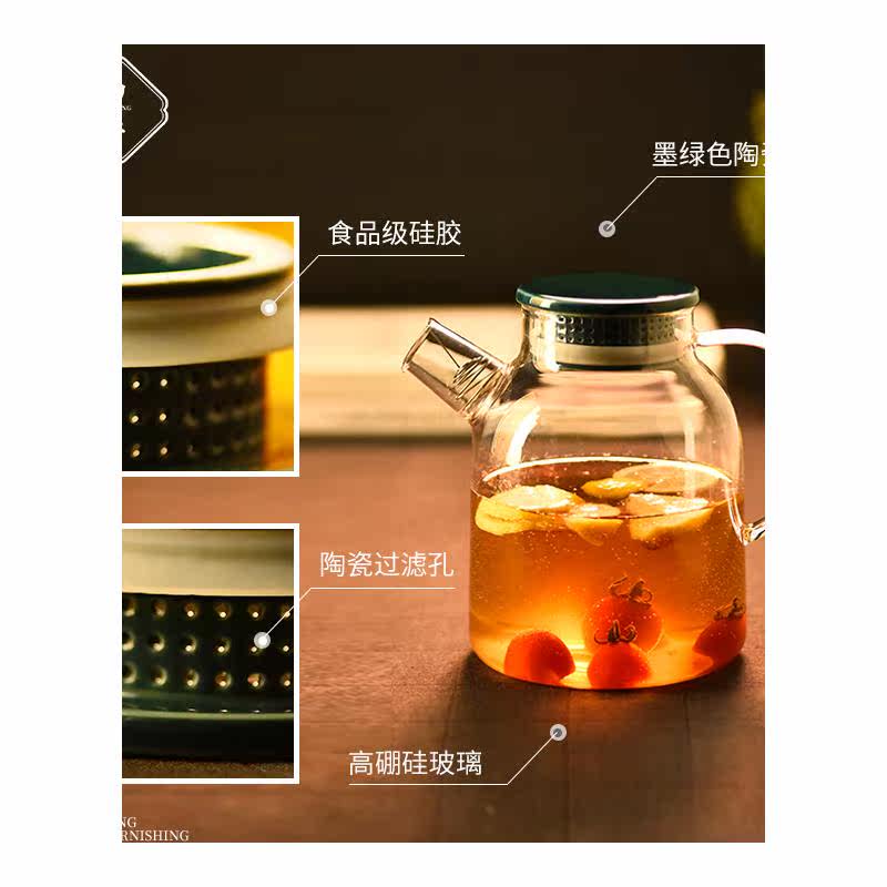 Flower teapot candle heating set net red fruit teapot boiling teapot light luxury retro glass health teapot