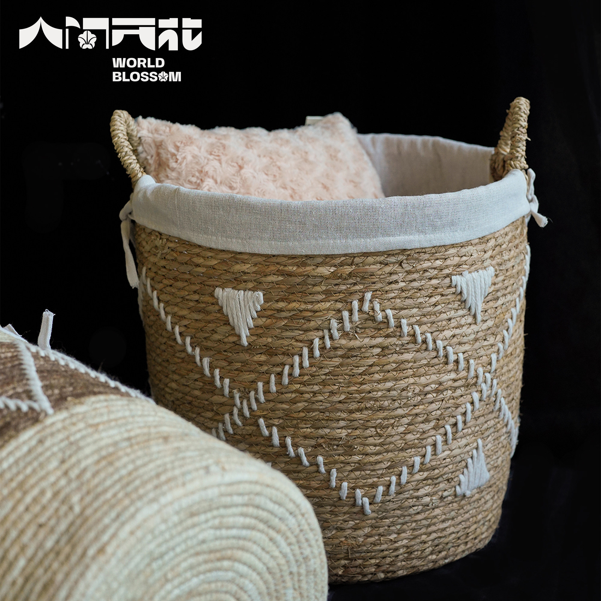 Earthly flowering Original hand woven straw woven straw Contained Fields Wind Containing basket Dirty Coat Basket-Taobao