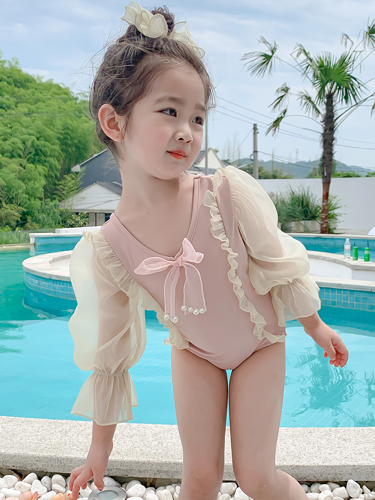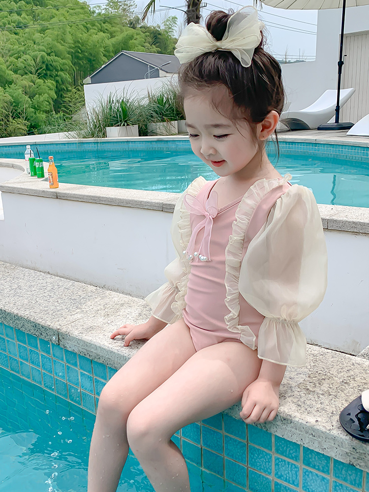 Pearl bow swimsuit pink swimsuit
