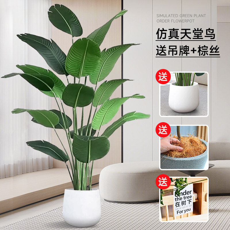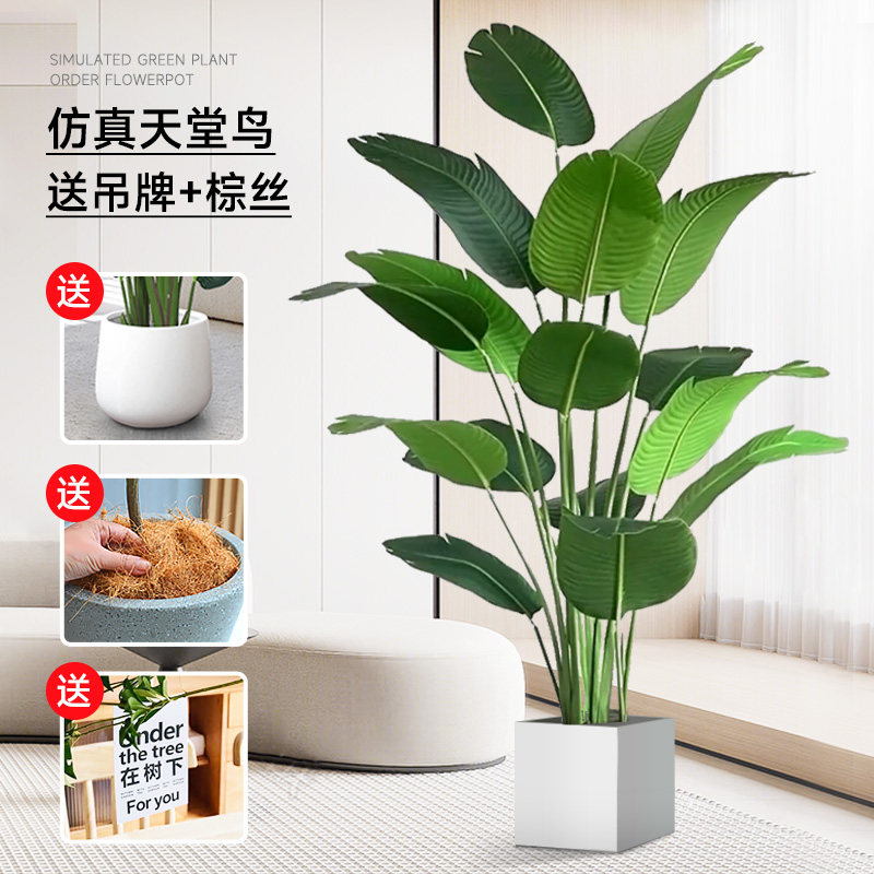 Simulation green planting heather bird living room indoor potted high-end light extravagant large brigade Banana Fake Green Plant Floor Pendulum-Taobao