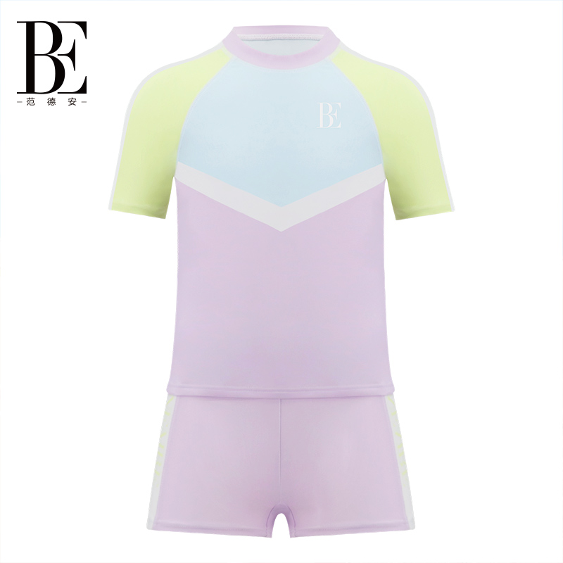 BE Van Der Ahn 2024 New Pint Children Split Swimsuit Flat Angle Girl Sunscreen Short Sleeve Swimming TrackColor Splicing