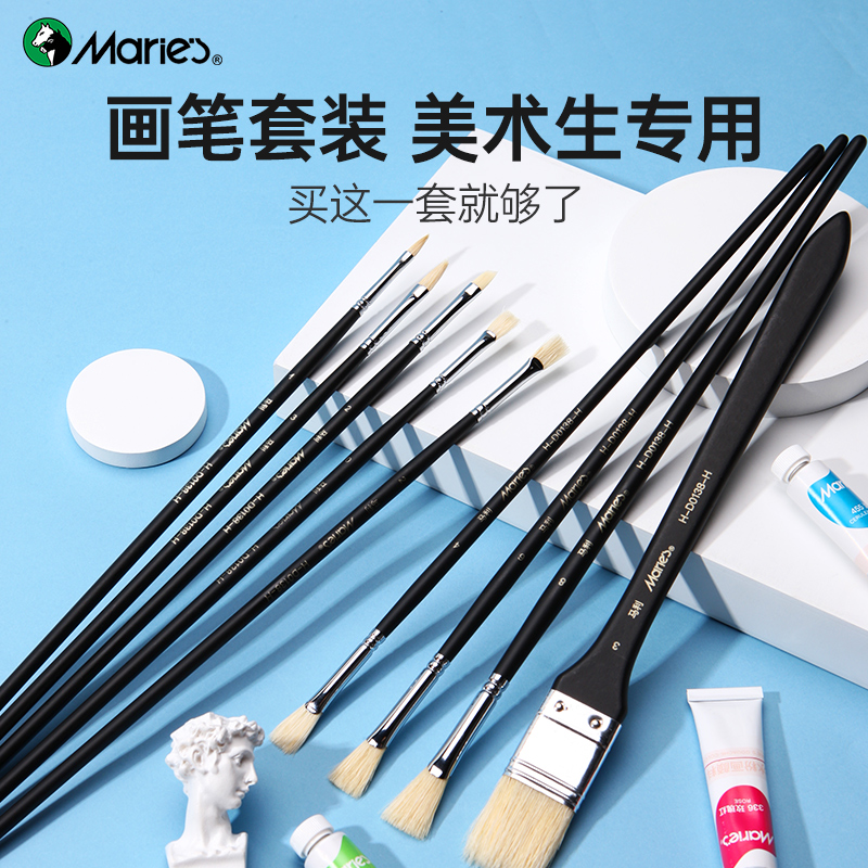 Mali Paintbrush Suit Fine Arts Students Exclusive Pig Mane Water Chalk Oil Painting Propylene Row Pen Brush Sector Pen Paint Black Knight Draw Painted Color Oil Color Brush Small Professional Painting Tool-Taobao