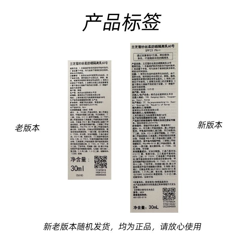 Laneige Lanzhi New Makeup Front Snow Veil Silk Soft Insulation Cream SPF23 PA Green 30ml X1 Support-Taobao