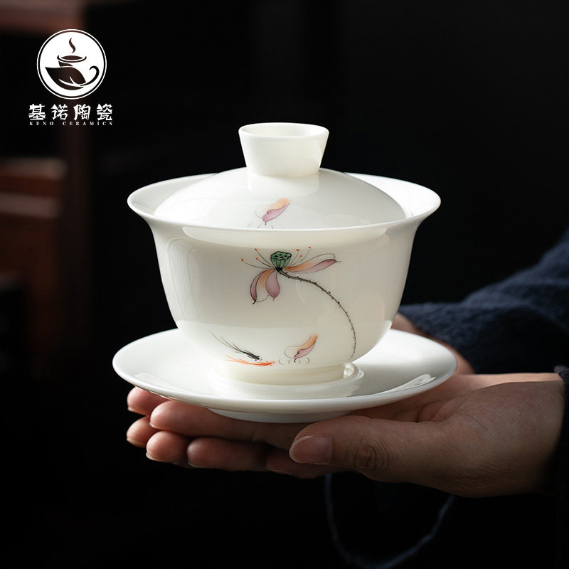 Hand painted hover cover bowl - (colorful lotus flower) minimalist hand painted hovering cover bowl - (5 colorful lotus lid bowl tea cup 1) Jane with hand painted hovering lid bowl - (5 colorful lotus lid bowl tea cup 2) Jane