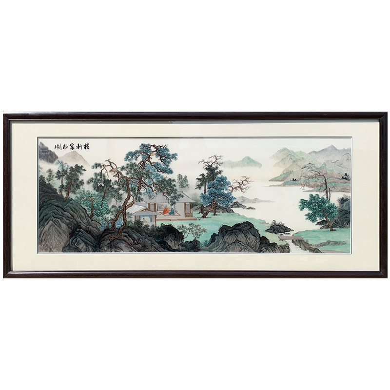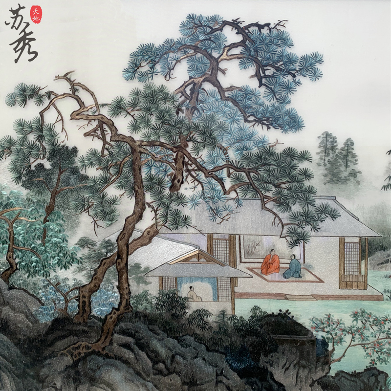 Su Show heaven and earth Non-artisanal Su embroidery Embroidery Fine Work 4 Silk Thread Ancient Mountain Water Villa Living Room Sofa Background Wall Painting-Taobao