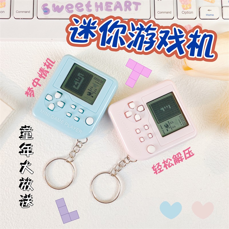 Children Mini Russia Tetris game console Toy electronic puzzle game online red decompression gadget key button-Taobao