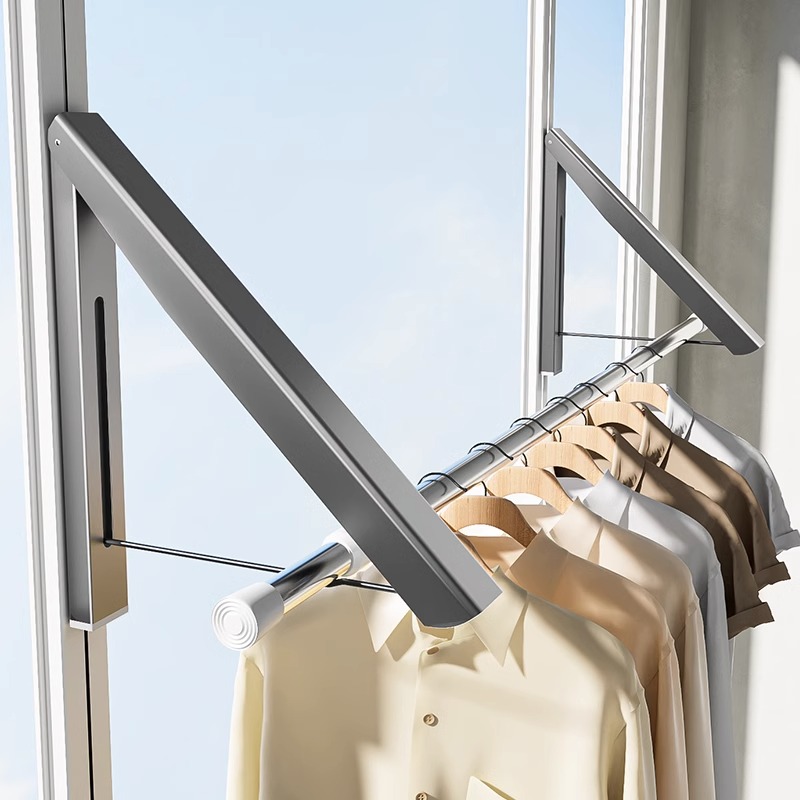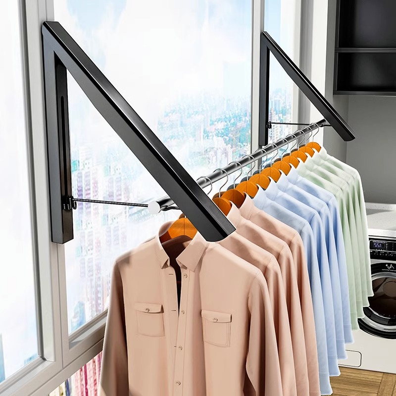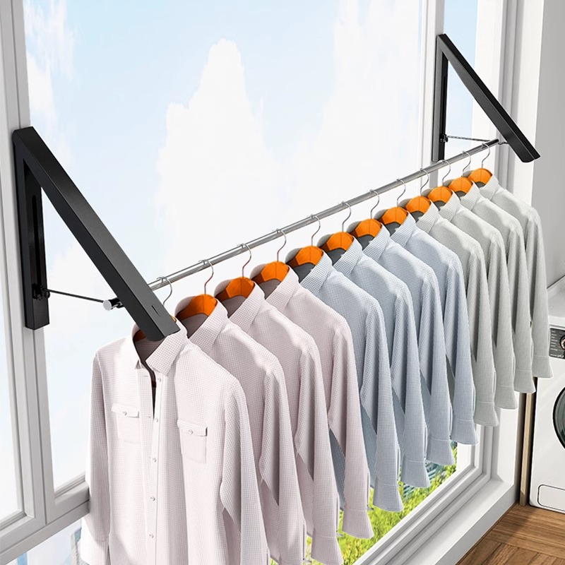 Invisible clothes hanger folding wall-mounted rod free of perforated indoor drying rope windows balcony telescopic floating window clothes hanger-Taobao