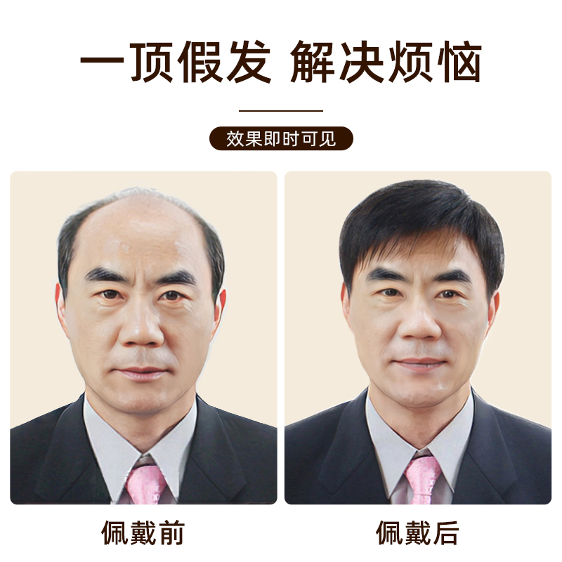 Wig Men Short Hair Partial Middle Aged Men Real Hair Headgear Old Age Dad Handsome and Realistic Light And Live-action Hair-Taobao