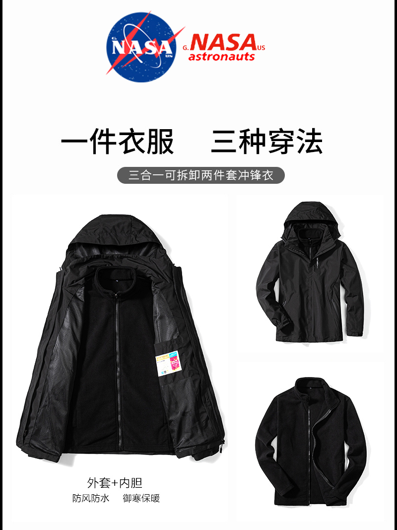 NASA submachine clothes men and women outdoor in Tibetan travel Three-in-one climbing suit jacket detachable windproof waterproof-Taobao