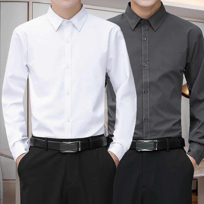 White Shirt Men's Long Sleeves Spring Autumn Season Business Casual to Burn Anti-wrinkle Blue Black Shirt Career to Work Tooling Inch-Taobao