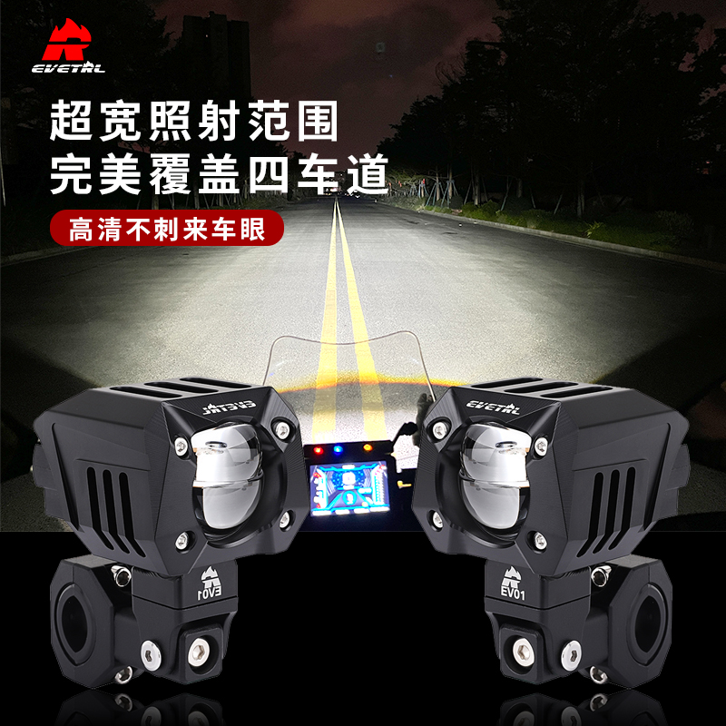 EVETRL motorcycle spotlight EV01 paving light high and low beam tangent LED lens bright flash fan spotlight