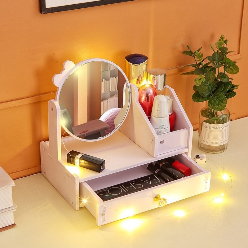 Mickey Round Mirror (Thickened) White Mickey Square Mirror (Thickened) White Mickey Double Drawer (Thickened) White Cute Storage Mirror (Super Value) White Simple Upgraded Version One Draw