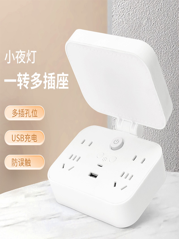 180-degree rotary converter multifunction home sub-control plug-in LED Smart voice night light Dormitory Usb Socket-Taobao
