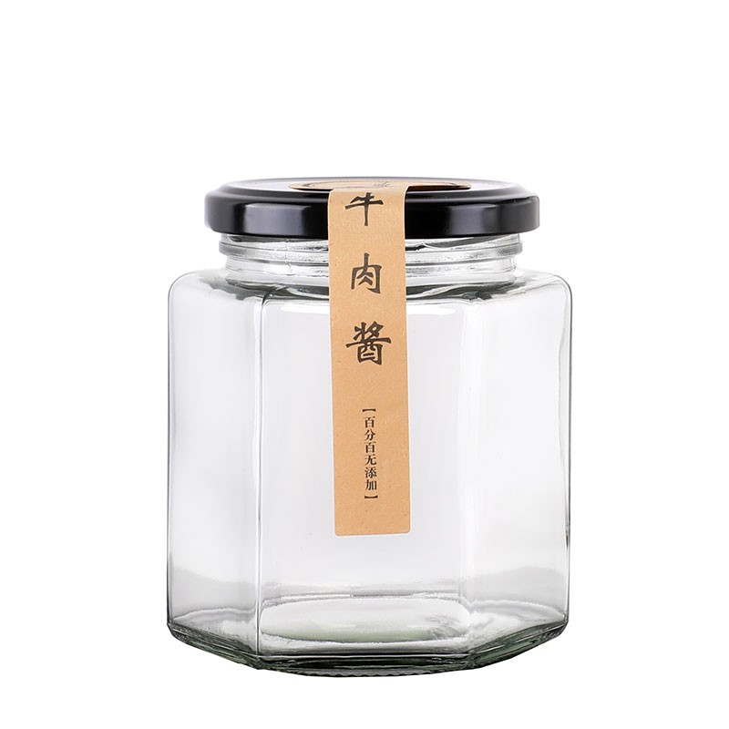 Six-edged glass jars sealed food grade small with lid empty one catty lemon paste honey chili jam special bottle-Taobao