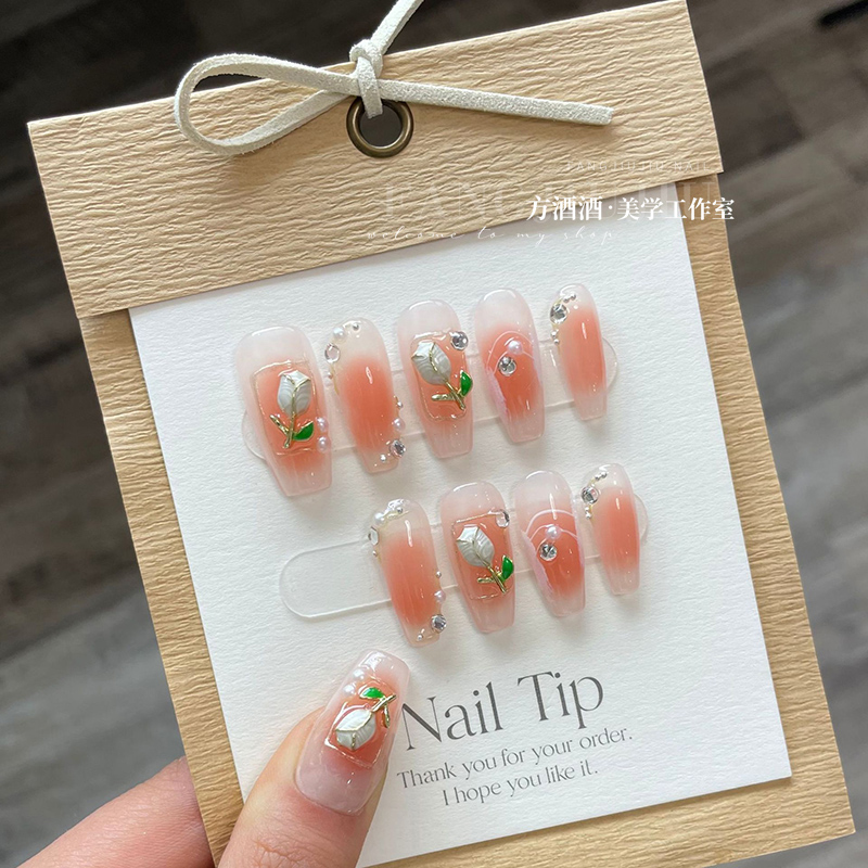 Enamel Tulip Artisanal Wearwear Chia 2023 New Flowers Advanced Sensation Meme Chia Patches Fake Nails Longs for Women-Taobao